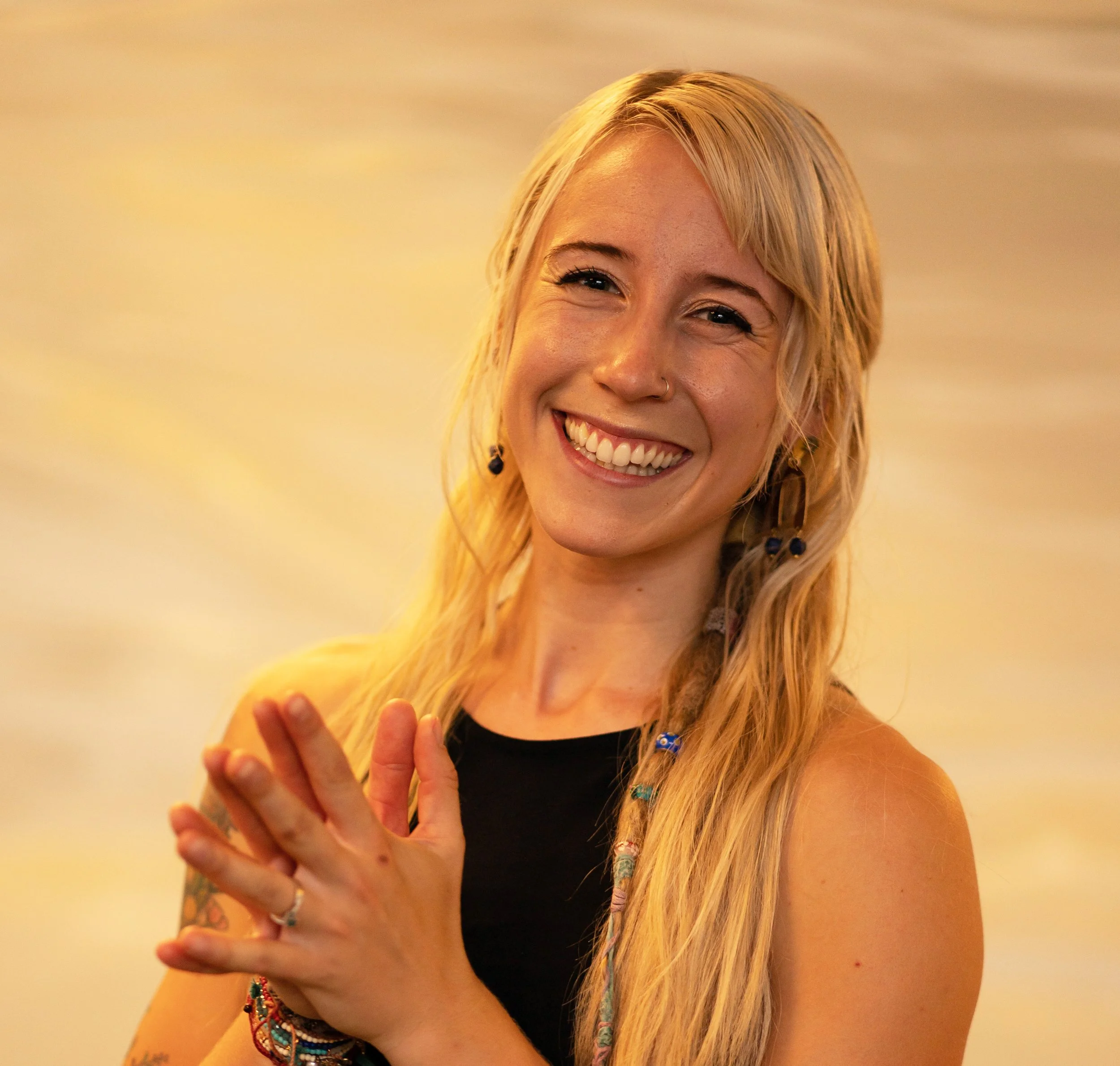 In the spring of 2015 Richelle took her first 200 hr training in Auburn, CA. Studying a form of Yoga heavily influenced with Bhakti and Vinyasa. Swooning in all the devotional mantra and kirtan, her spiritual and mindfulness practice began. In the fall of 2015 Richelle moved to Alaska and while there had the opportunity to continue to study Thai massage, kids yoga, aerial arts and acro yoga.